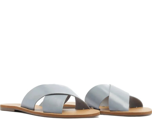 Blue Leather Cross Straps Flats