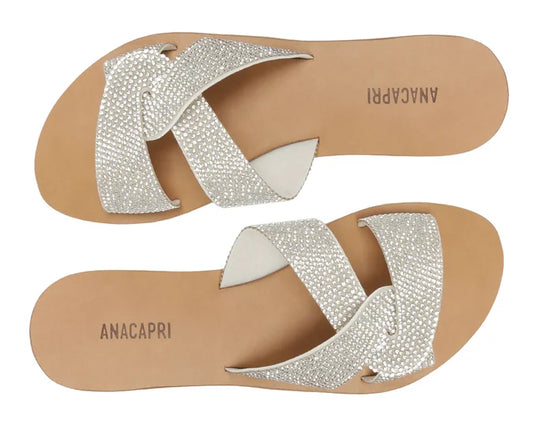 Silver Glitter Interlaced Strap Flat Sandal